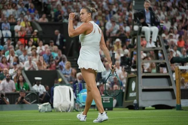 萨巴伦卡之前就曾被主场观众干扰过,这次她的担心并非多余。拉杜卡努气势如虹地开局,温布尔登中央球场的观众随之沸腾,欢呼声在屋顶下回荡。英国人率先破发,甚至在首盘抢七中握有盘点。萨巴伦卡一度情绪波动,频频尝试高风险打法,出现了一些在其它比赛中几乎不会失误的击球。她一贯丰富的面部表情也真实记录了这一切。