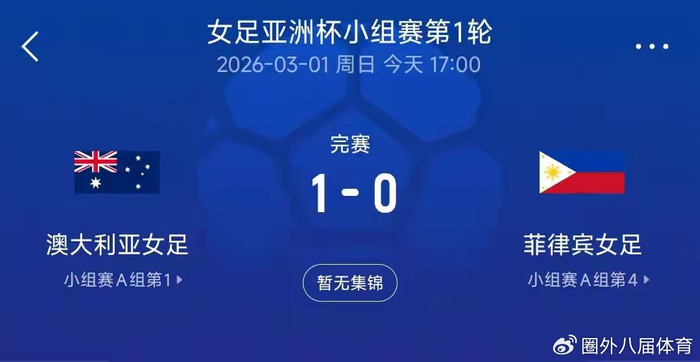 女足亚洲杯揭幕战可太有意思了,东道主澳大利亚踢菲律宾,赛前大家都觉得这不得来个惨案啊,结果呢?1比0,就进一个球!不知道的还以为菲律宾逼平了强敌呢,数据一看更离谱,澳大利亚控球率超过八成,射门二三十次,角球拿到手软,菲律宾全场零射正,就这么个局面,澳大利亚愣是啃不下第二球,踢得那叫一个憋屈!