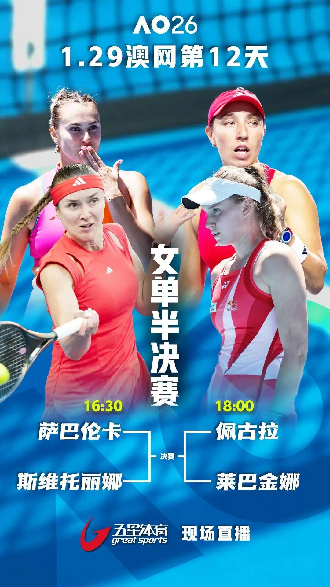 1月29日下午16:30开始五星体育将继续为您带来澳网女单半决赛的转播: