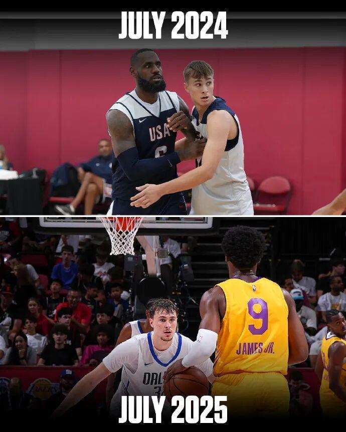 赛季至今,弗拉格场均21.2分6.6篮板4.5助攻,三项命中率47.1%/29.7%/82.3%。一个19岁的新秀,打出了全明星级别的数据。他是2025届状元,选秀前就被称为“美国之子”,高中毕业就进了美国男篮陪练队。2027年世界杯,2028年洛杉矶奥运会,他已经预定了席位。不是因为他潜力大,是因为他现在就够强。