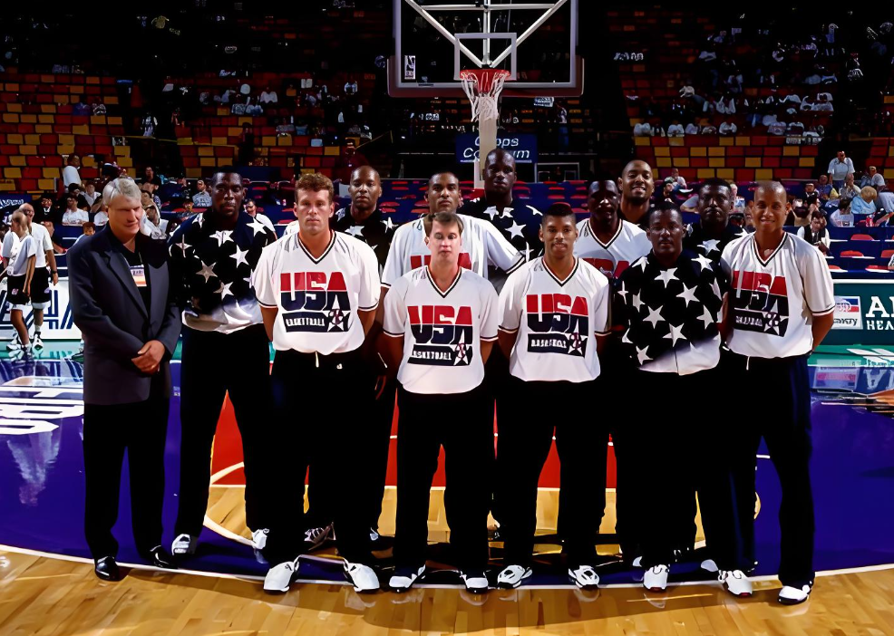 1996年,正值亚特兰大奥运会时期,对比前两次1992年巴塞罗那奥运会和1994年多伦多举行的世界锦标赛,这一次作为东道主,美国男篮有着无论如何都不能在自家主场丢掉金牌的压力,因此美国男篮这一次精锐尽出,招募了当时12位NBA的顶级球员,其中包括五位MVP。最终结果也是不负众望,梦之队以场均赢对手20分的悬殊实力顺利完成夺冠使命。