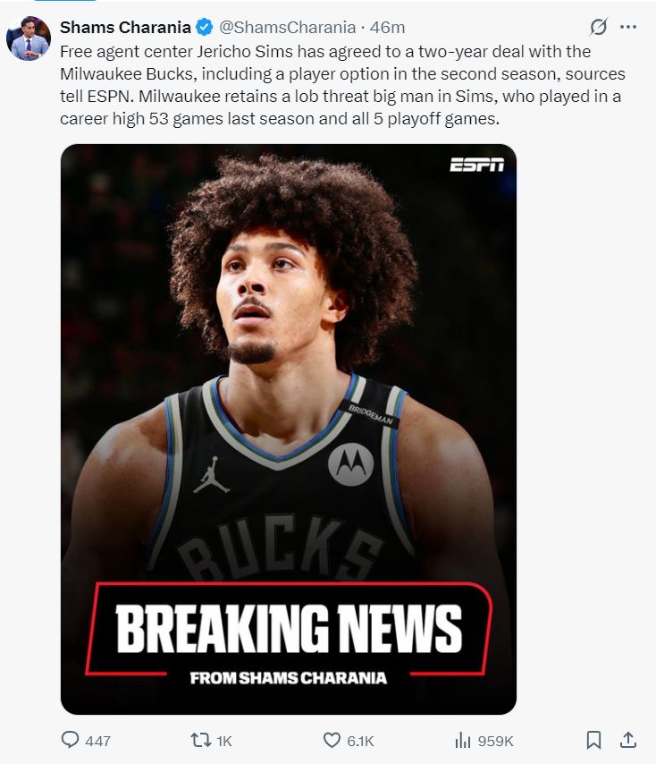 在7月1日自由市场开启后密尔沃基雄鹿队是不断的运作: